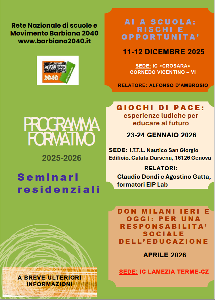 Conferenze, laboratori, incontri e convegni della Rete di Scuole Barbiana 2040.